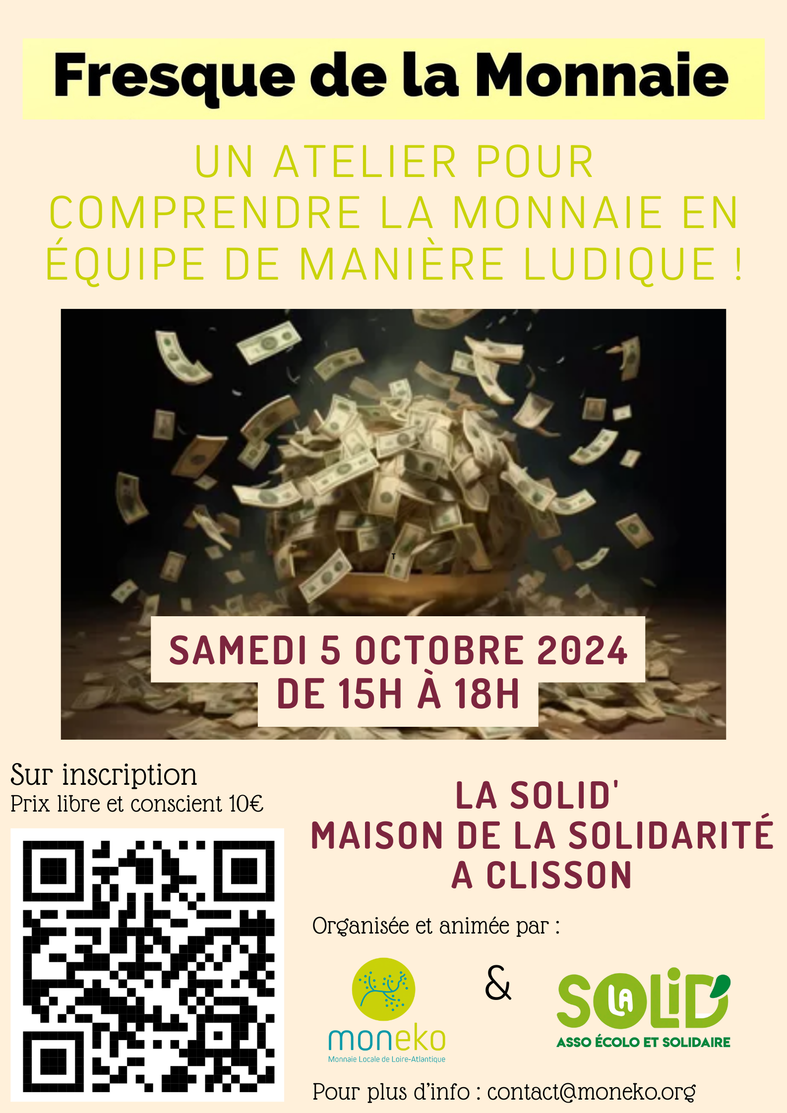 Un atelier ludique, en équipe, pour comprendre la monnaie, son histoire, la notion de création monétaire et les alternatives aux fragilités de l’économie. 3 heures riches de partage, de découvertes et d’échanges, en partenariat avec Moneko.