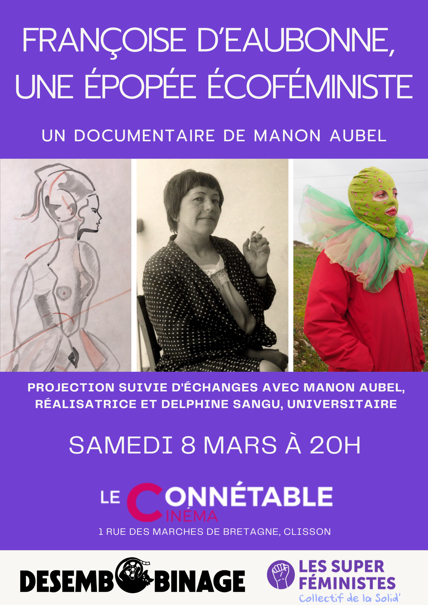 En soirée au cinéma Le Connétable : Projection du documentaire Françoise d’Eaubonne une épopée écoféministe, en présence de la réalisatrice Manon Aubel. Avec Désembobinage et Les Super Féministes.