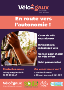 En route vers l’autonomie. contacte Marie pour en savoir plus, ou rendez-vous le 10 janvier à partir de 17h, pour une galette et une présentation de ce dispositif innovant, qui te donne accès à un vélo et des cours de remise en selle et de mécanique entièrement gratuits !
