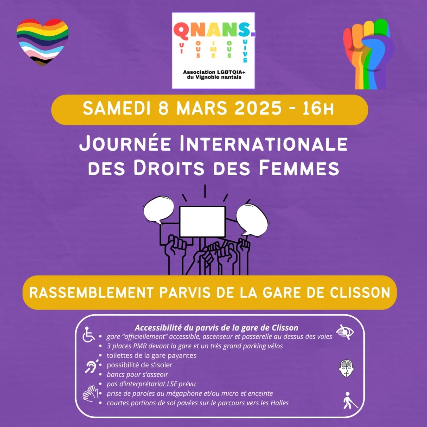 Samedi 8 mars... et durant tout le mois de mars : les assos et collectifs féministes du vignoble nantais célèbrent la Journée Internationale des Droits des Femmes. Marche militante depuis la gare de Clisson à l'initiative de Qui Nous Aime Nous Suive à 16h, suivie d'un flash mob et de la chorale féministe du vendredi. […]