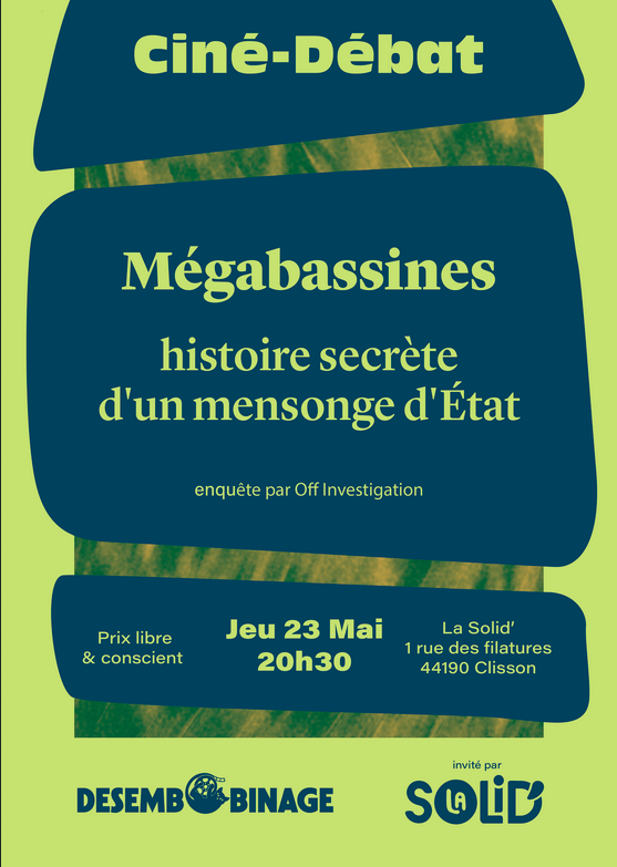 Projection d'un docu sur les méga bassines. Nombre de places limité.