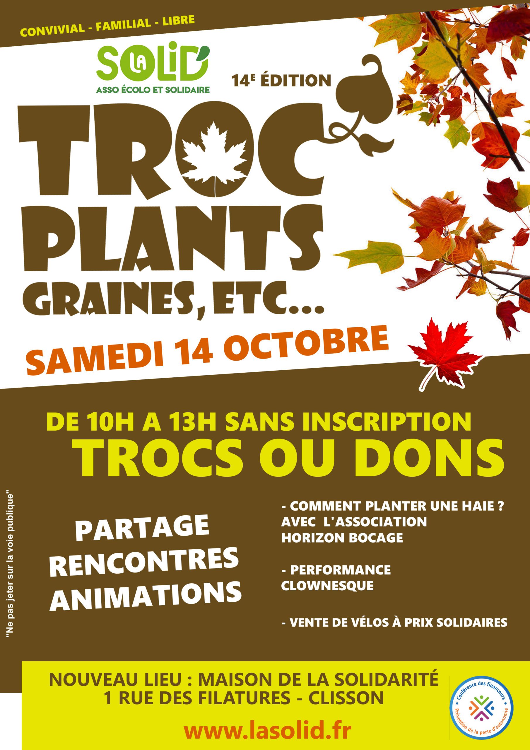 Rejoins-nous aussi lors de notre Troc plants, graines et vide-jardin samedi 18 octobre de 10h à 13h porte Palzaise à Clisson (quartier Trinité), dans le cadre du festival Festiverde (programme complet du festival ici). Tu peux venir avec ou sans trucs à troquer : des boîtes de prix libre seront à disposition si tu n'as […]